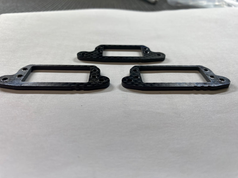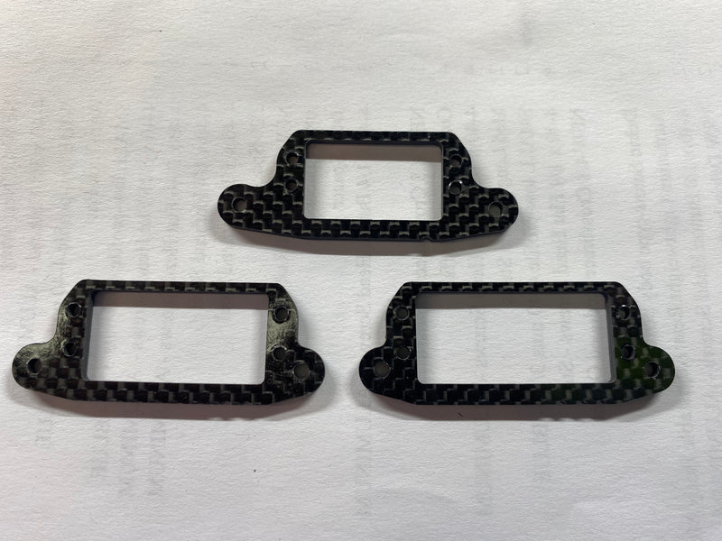 Part of the PRW Anti-Twist Servo Mount System introduced on the 4.8 platform, this product is for only the 3 carbon servo mounting plates. Plates are notched for easy identification. 1 Notch = MKS/Sanwa/Exalt size, 2 = Futaba BLS671, 3 = Futaba S9650. Every common servo size comes right in the 4.8 kit, no modification needed!