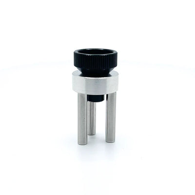 This is a BSR Racing tire truing adapter for 1/12 rear tires. The adapter has 3 "prongs" that key into the outer screw holes of a 1/12 rear tire, resulting in even pressure when securing the tire to your arbor.