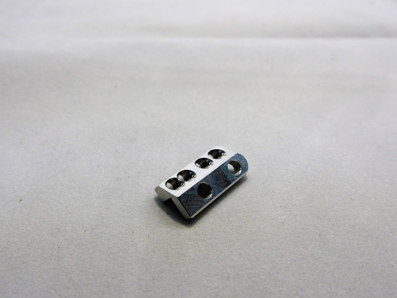 This is a machined aluminum servo mount adapter to fit a Futaba BLS671 servo when chassis holes are drilled to fit a 9650.