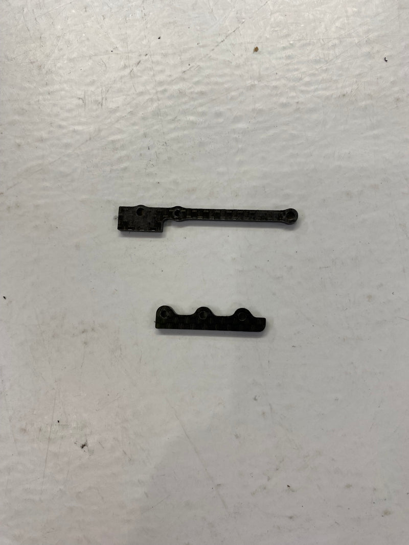 This is a pair of carbon weight brackets (front/rear) for the brass left side weight on the Chief-12 1/12 oval pan car kit. Brackets are 4-40 tapped to omit the use of a lock nut.
