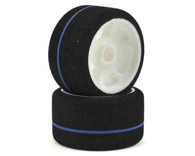 This is a pair of CRC 1/12 WGT Stripe spec foam pan car tires. Blue stripe for easy identification in tech inspection.