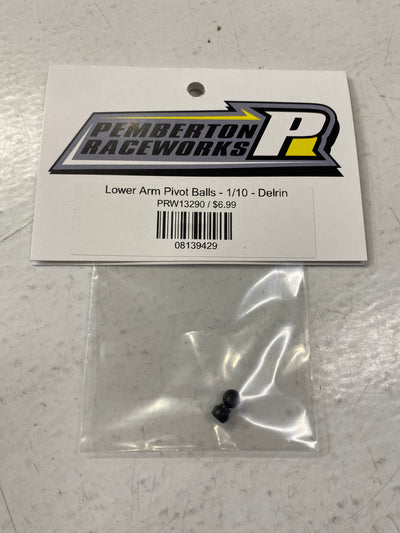 This is a pair of delrin pivot balls used in the lower arms of your Pemberton Raceworks vehicle. Fits all models minus 1/12 pan cars. Please see part# 13300 to purchase the 1/12 version that are undercut to accept 1/10-length springs.