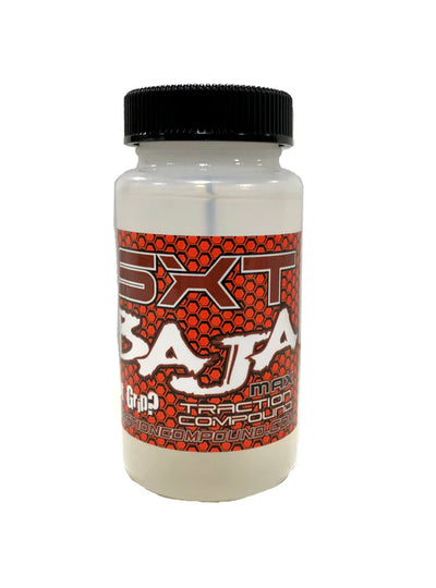 This is a 4oz bottle of SXT Baja Max traction compound. Originally formulated for clay off-road racing, Baja Max has also shown to be effective in foam tire carpet off-road and rubber tire carpet oval racing.