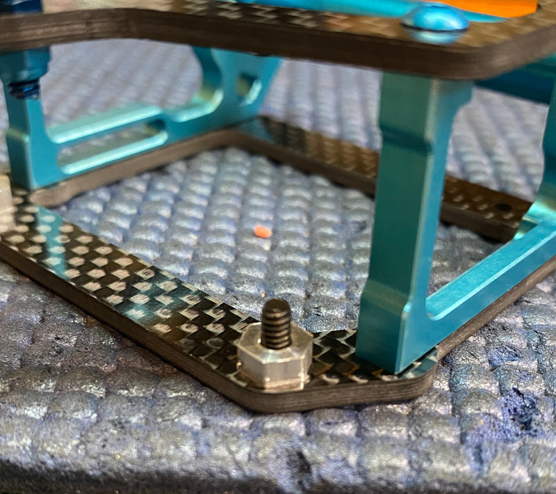 This is a pack of 2 aluminum threaded T-Plate spacers for your Pemberton Raceworks vehicle. Conveniently accepts a 1/4" nut driver. This version is an option part to our non-threaded "ring" style spacers.