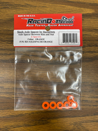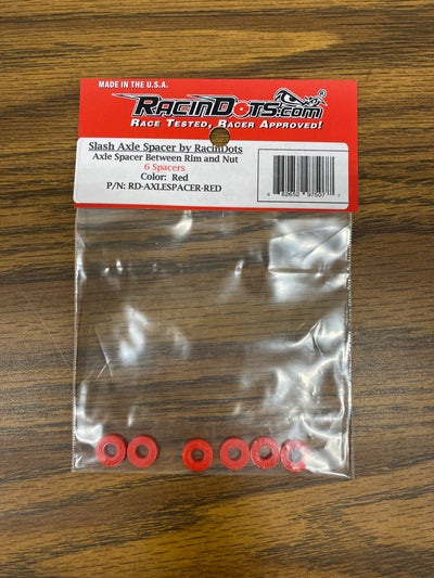 This plastic Axle Spacer takes up the gap between the Slash rim and axle nut when using the black wheel hex on the right front of your Slash chassis. No longer will you need to stack various metal washers or use an axle bearing to take up the gap between the rim and axle nut. One Axle Spacer does the trick! Currently offered in Bright Red so they're easy to find on your pit mat or on the floor in the event you drop them. 6 Axle Spacers come in each kit.